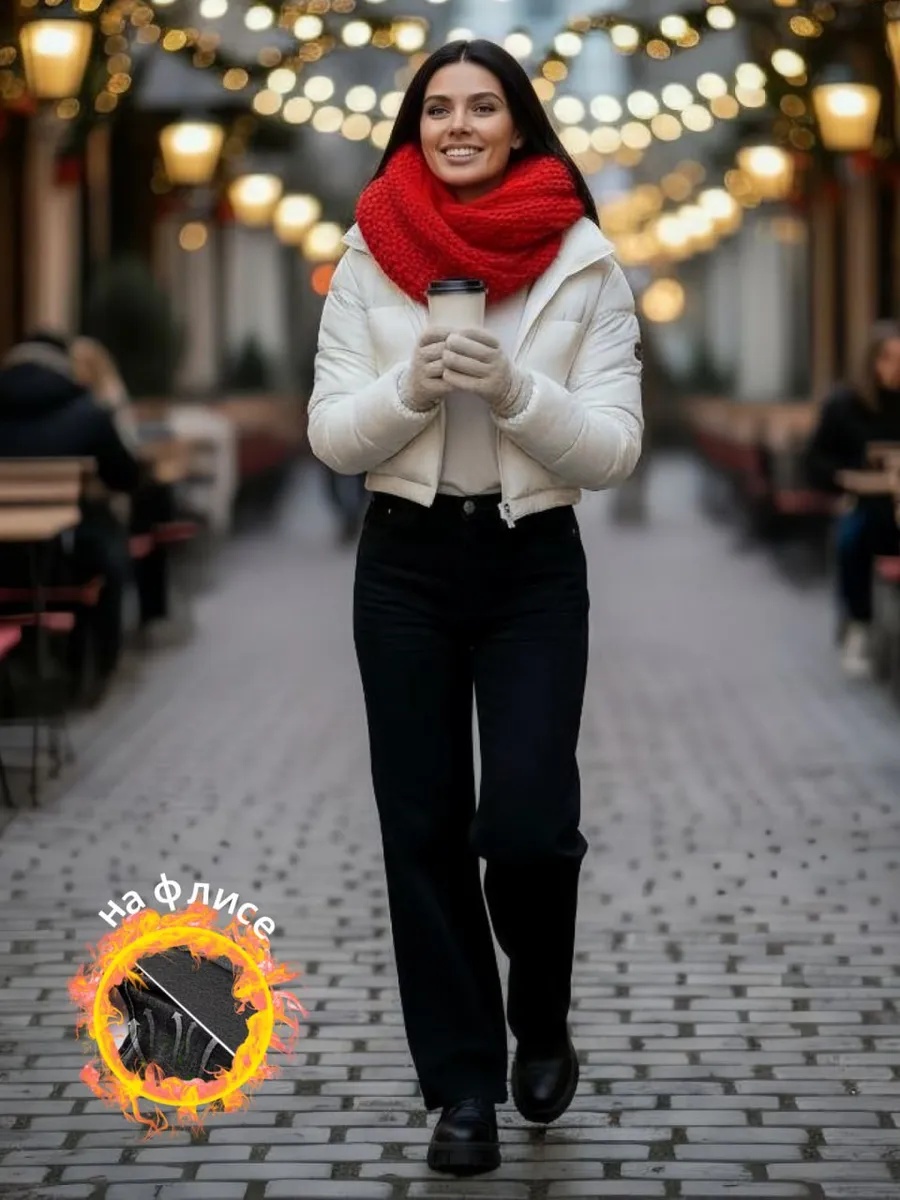 Джинсы трубы на флисе теплые