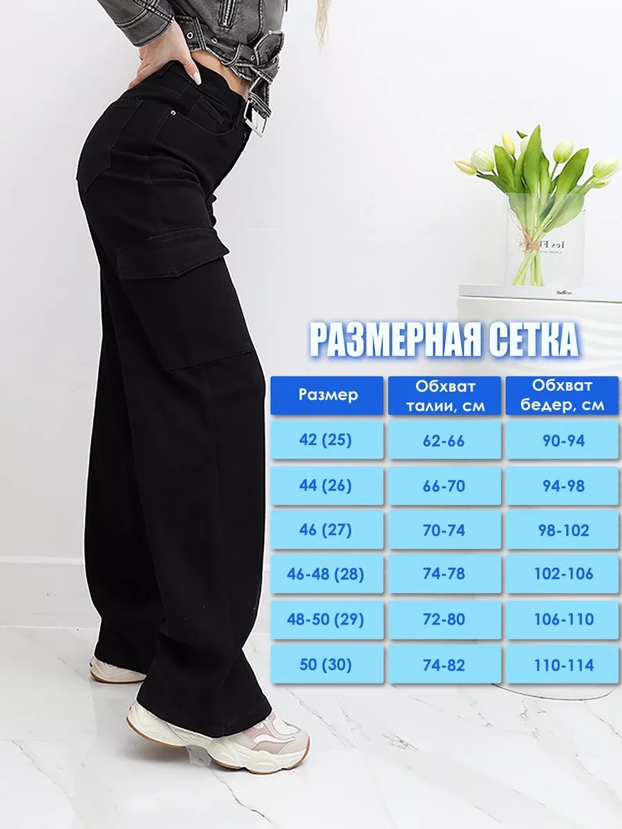 Джинсы трубы карго с карманами